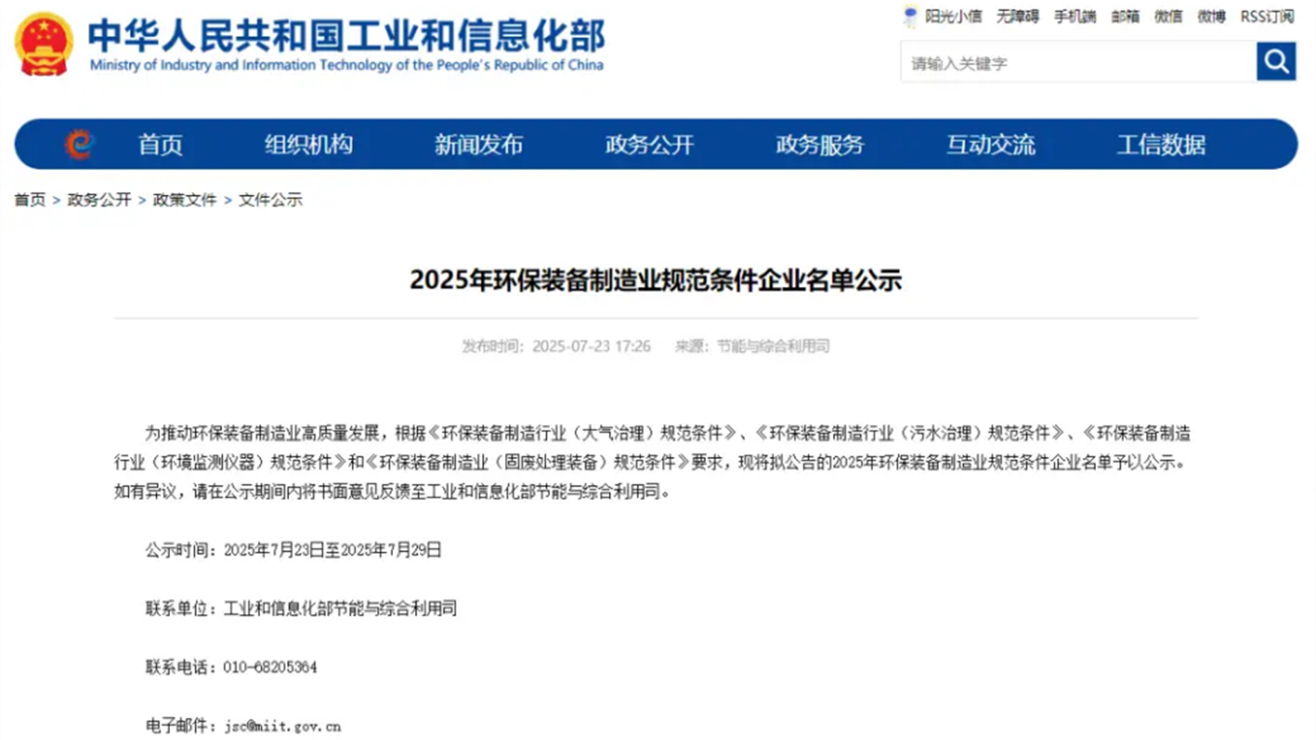近日,工業(yè)和信息化部公示了《2025年環(huán)保裝備制造業(yè)規(guī)范條件企業(yè)名單》…